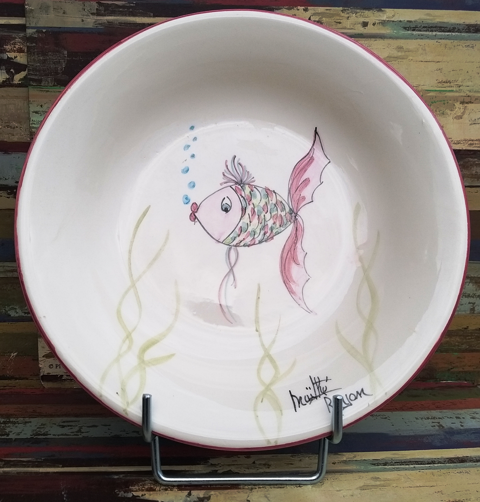 Assiette plate céramique modèle poisson rose D: 19.5cm LO17POROS1