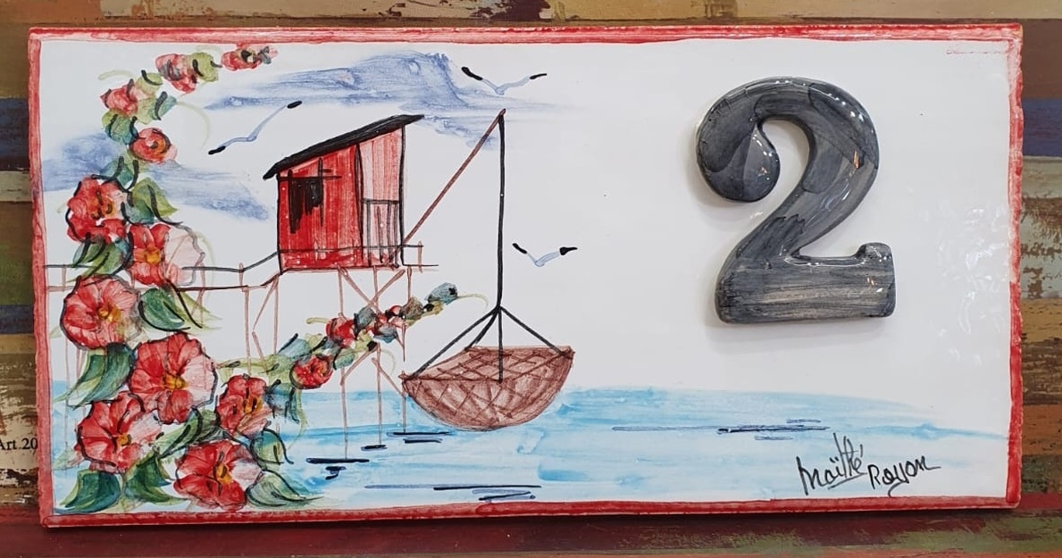 Plaque numéro maison droite en céramique petit modéle, L: 10cm x l: 20cm.