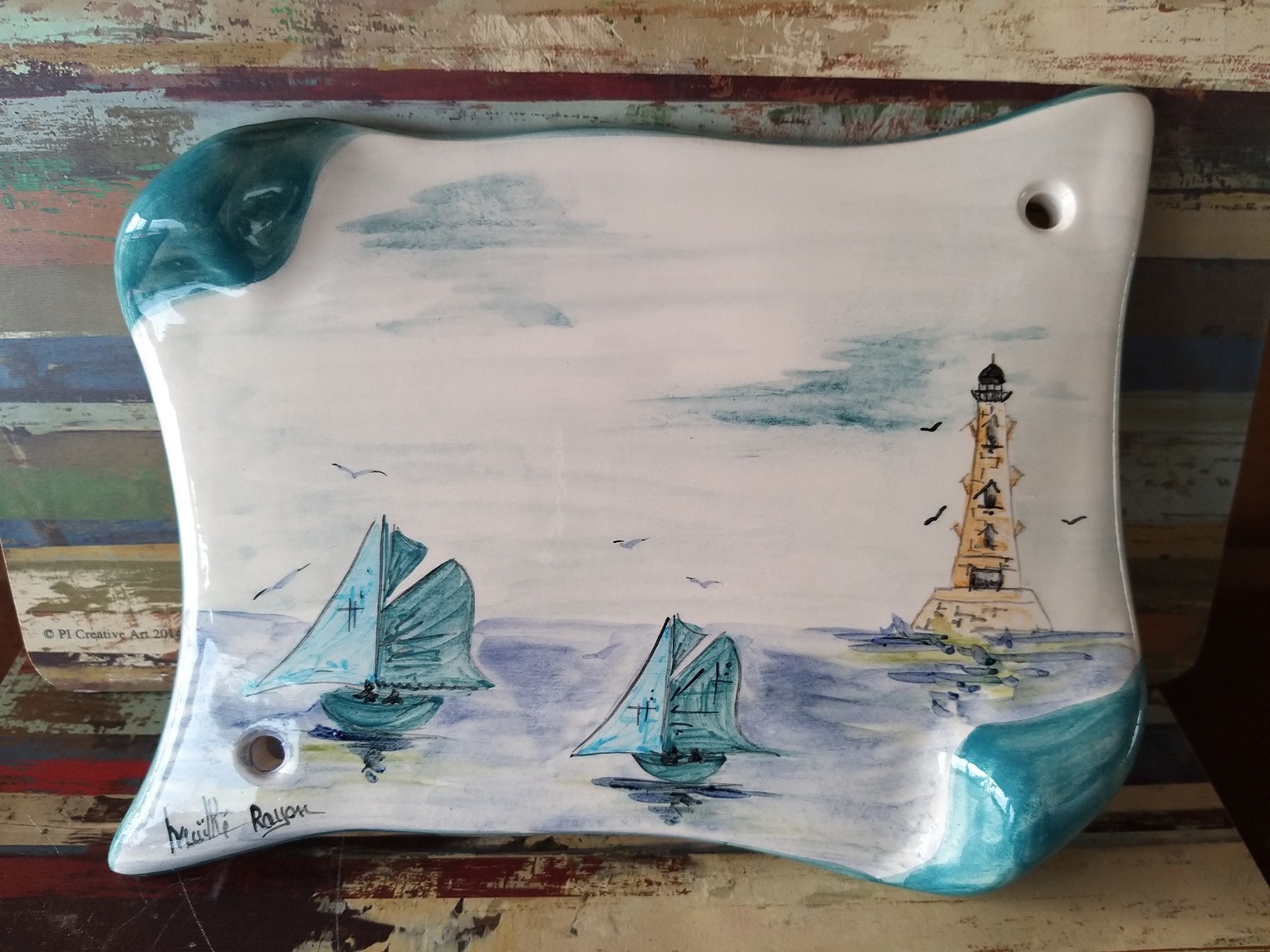 Plaque numéro de maison céramique personnalisée grand modèle Bateaux NGM00173