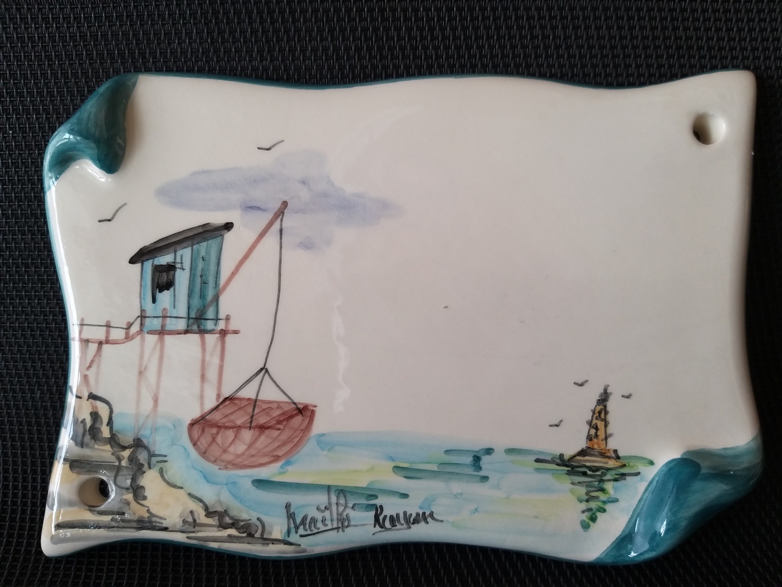 Plaque numéro de maison en céramique artisanale petit modèle motif carrelet phare de Cordouan NPM001737