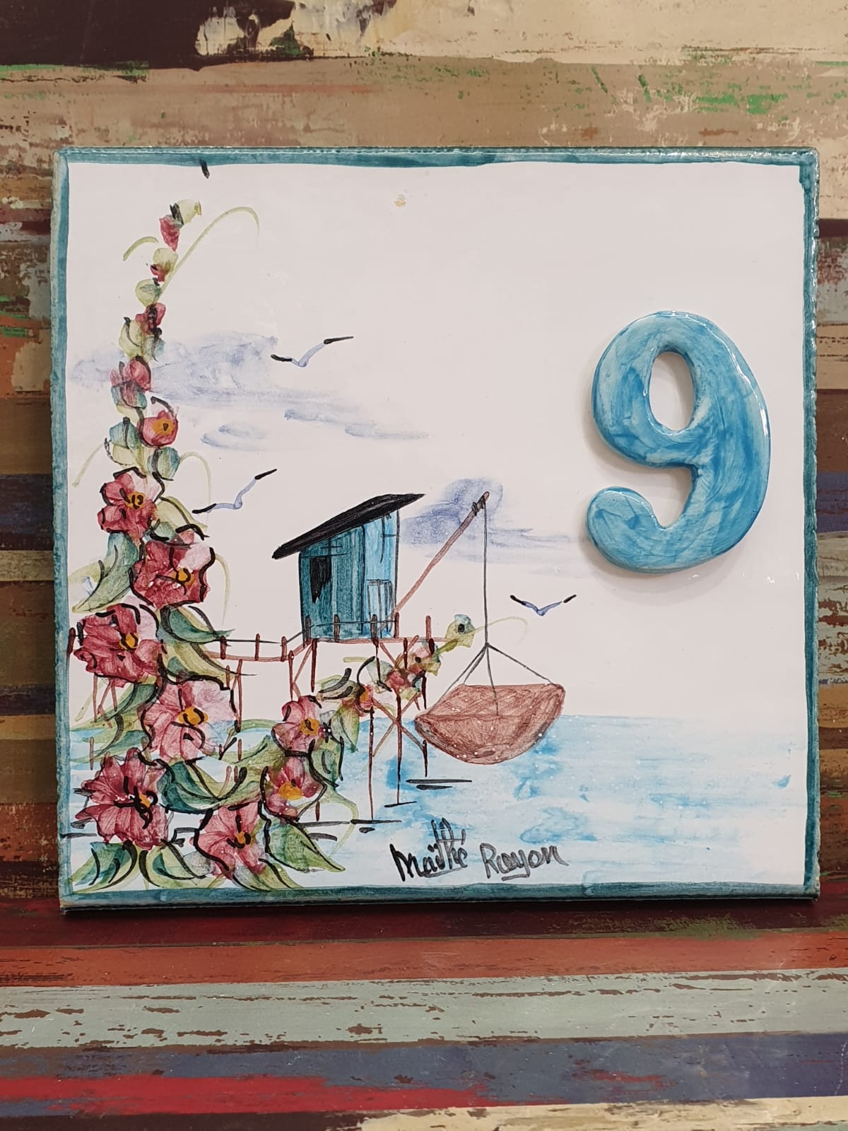 Plaque numéro maison droite en céramique moyen modéle, L: 15cm x l: 15cm.