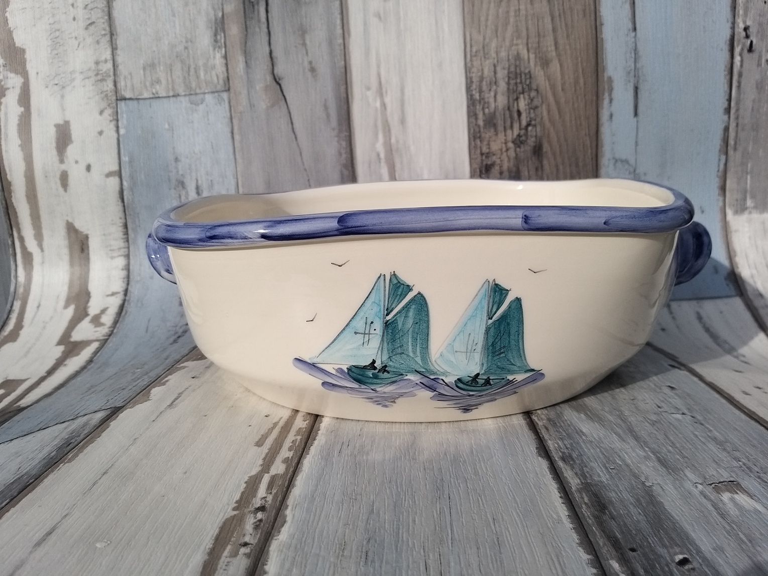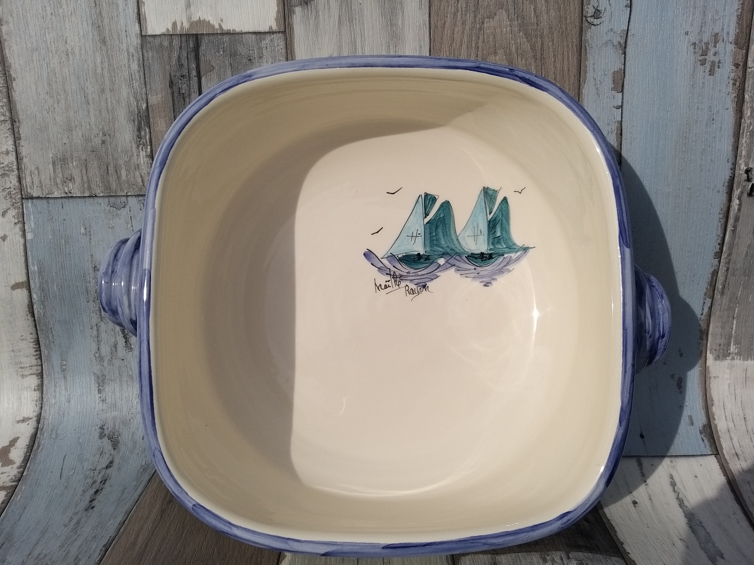 Plat carré culinaire à anse petit modèle: Nouveau motif bateaux