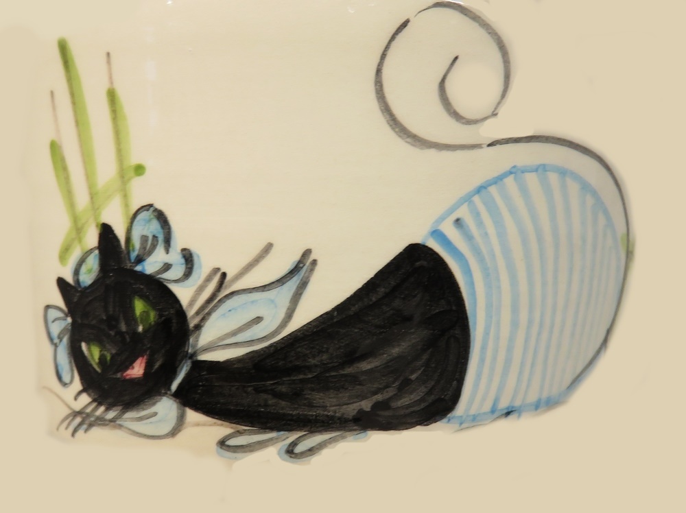 Plat carré culinaire à anse petit modèle: Chat turquoise