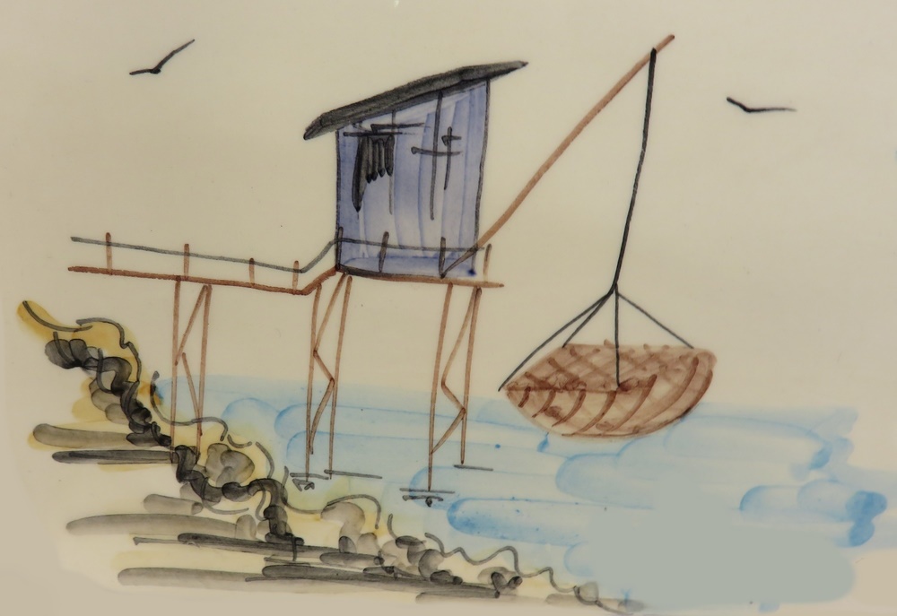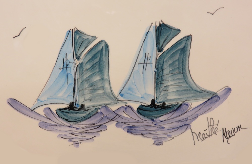 Plat rond culinaire moyen modèle: Nouveau motif bateaux